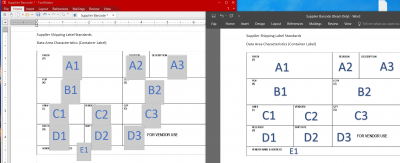 Attached is a page of the document and also a screen cap of what I see when comparing them.