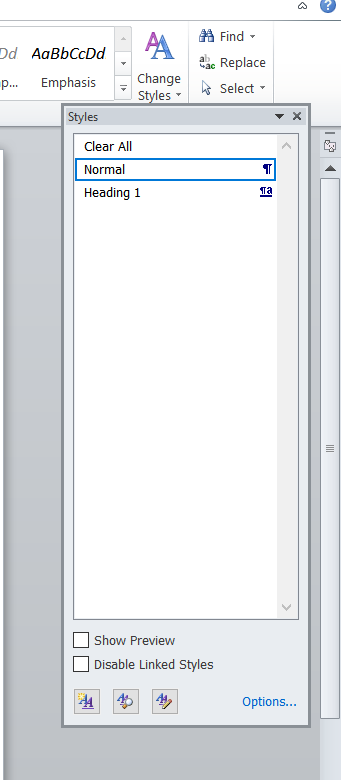 And I also can't figure out how to open a document with no styles (with the intent of creating a new document template).