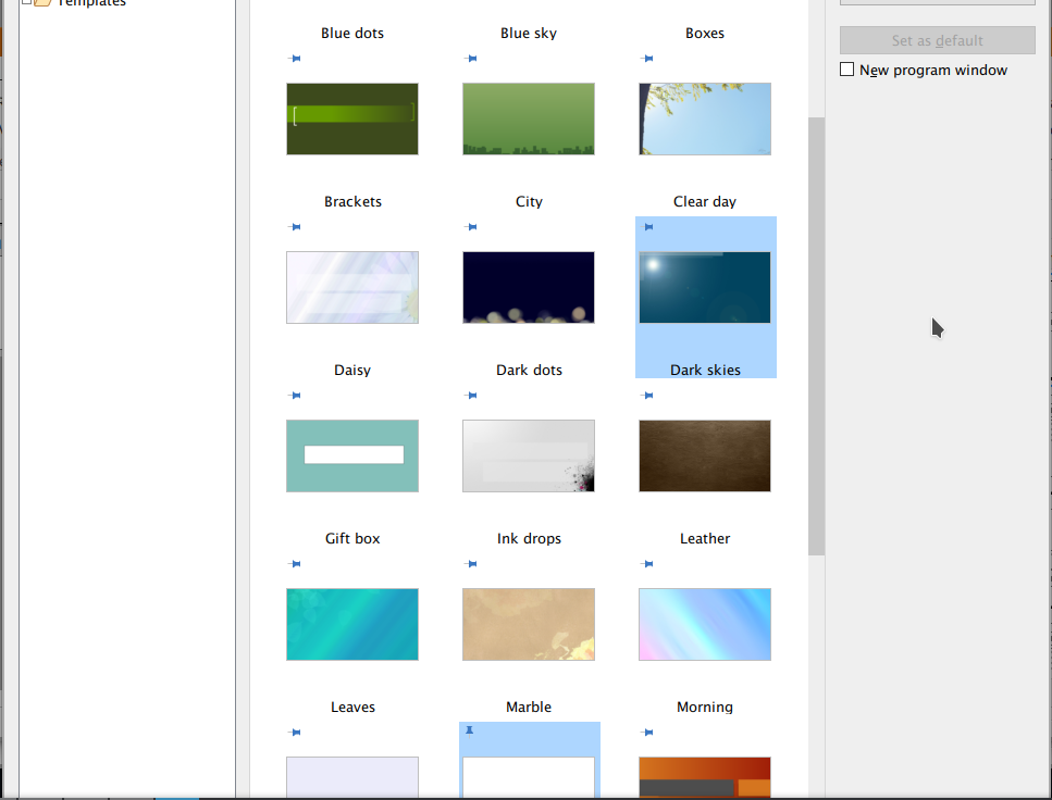 In TextMaker and Presentations when you open the dialog to create a new document, the window to choose a new template is over sized. it does not fit the screen and can not be resized. Due the way the window is placed the "ok" and "cancel" buttons cat not be seen nor reached forcing me to move the window manually.