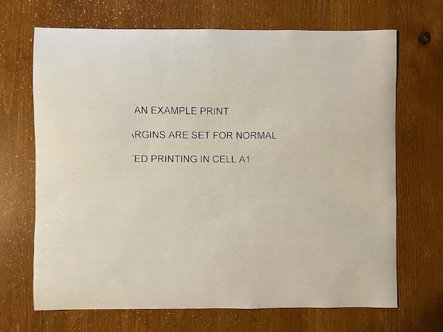 Mac OS 12.1 Monterey FreeOffice PlanMaker 2021 (rev F1042.1212) 64bit When I print in landscape orientation in both TextMaker and PlanMaker it prints with large margins at both the sides and top. This doesn't happen if I print in portrait mode. I deleted and added the printer. I uninstalled and reinstalled SoftMaker but no help. I have 2 printers and it does this on both.I attached 2 images of a printout in Planmaker. It is cutting off the text in landscape mode. I started printing in cell A1 with normal margins. If I print on my Windows 11 laptop everything is correct. Thanks in advance for any help.