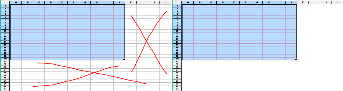 With respect to the deletion of rows below or to the right of the active part, I think the op refers to a function in excel that may or may not work