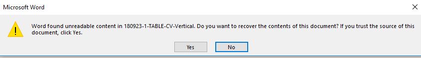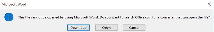 I then changed to my Windows 10 partition and attempted to open them in Word 365, with the following results: