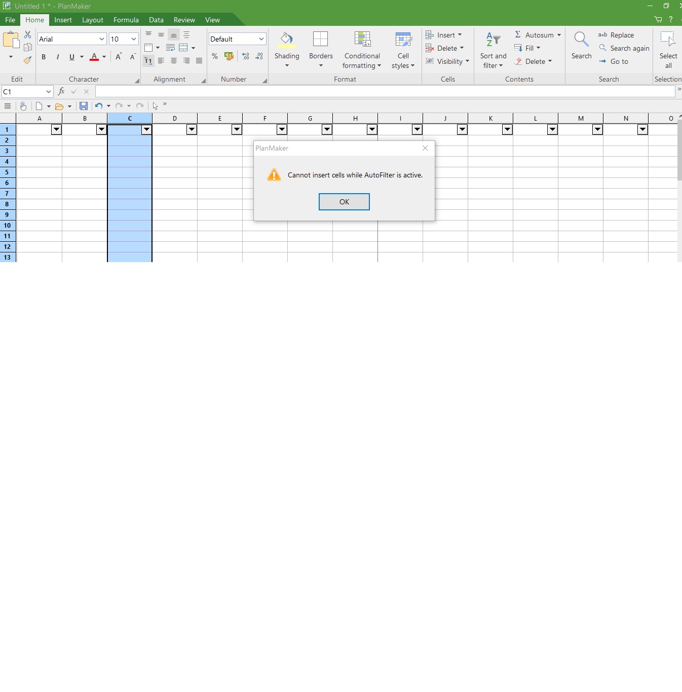 Unable to insert a Column in filter mode