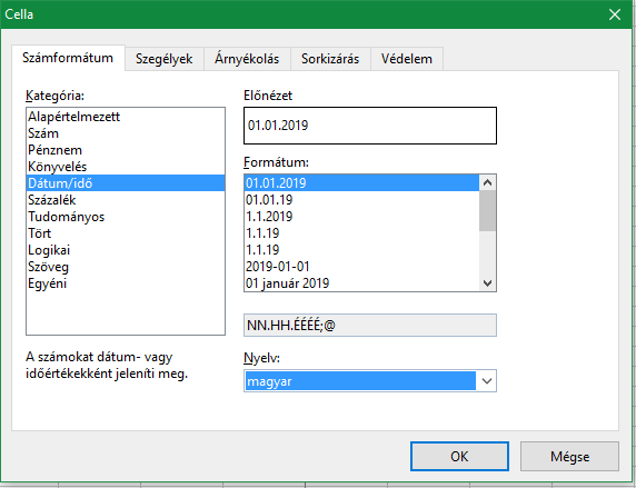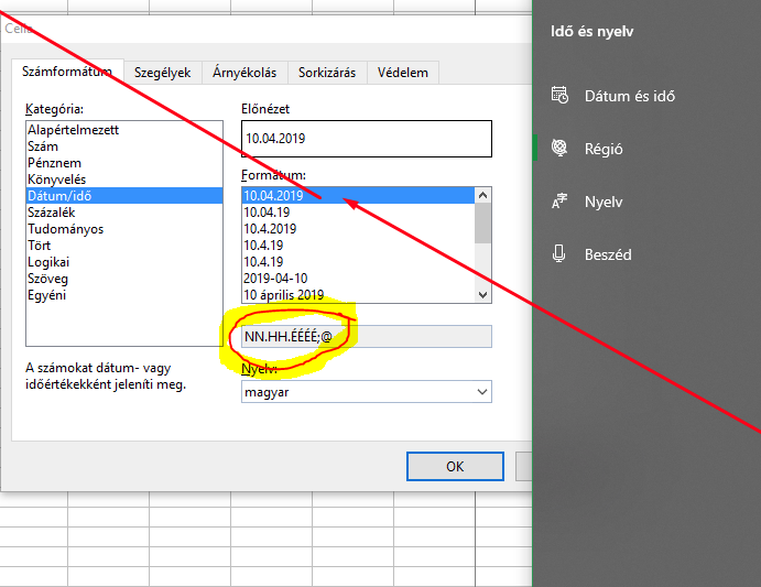 Please click on custom (Egyéni) and change NN.HH.ÉÉÉÉ;@ to ÉÉÉÉ. HH. NN.;@