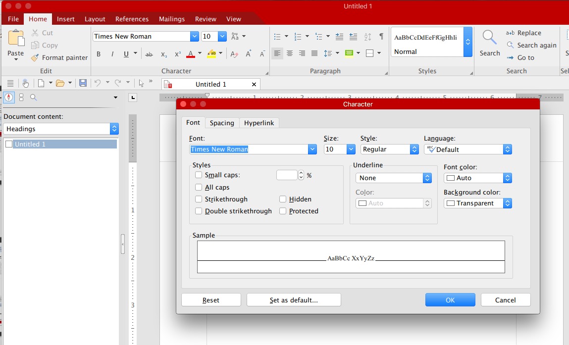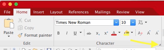 1. Click on the group arrow in the bottom right corner of the ribbon tab Home | group Character.