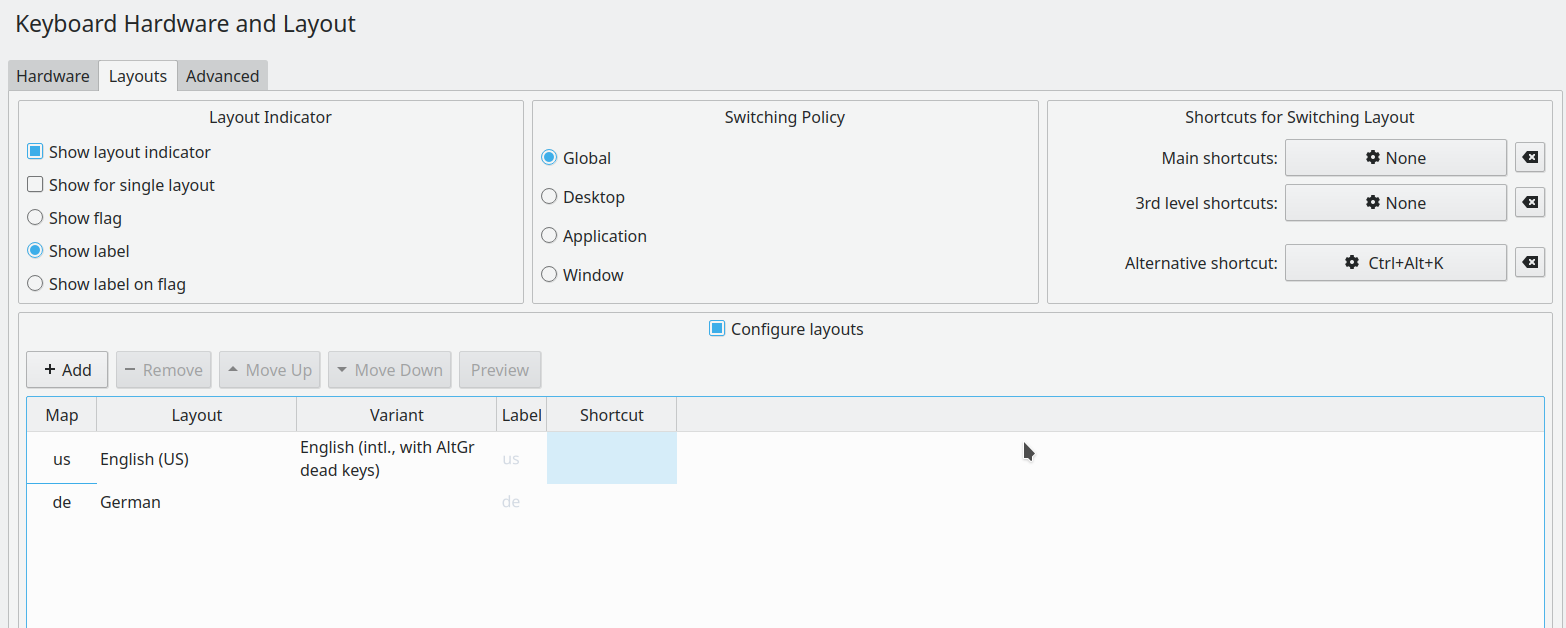 Attached are all my keyboard layouts. My version of Plasma: