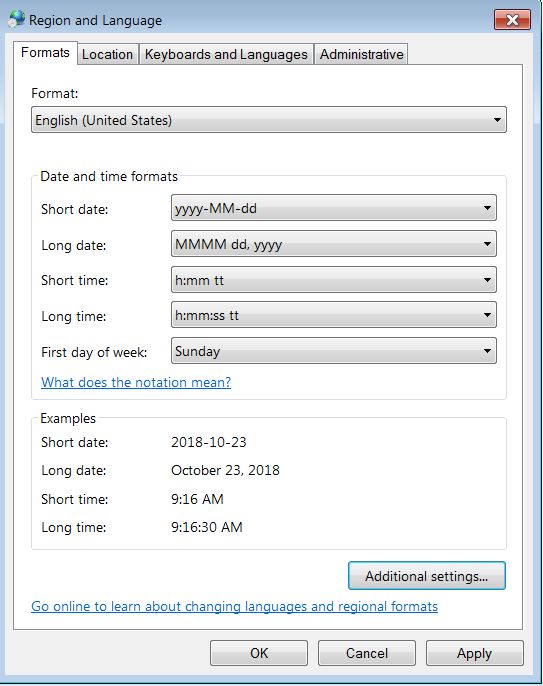 I am running the latest update of Softmaker 64 bit under Windows 7 Professional 64 bit. The system date is set to display yyyy-mm-dd or 2018-10-19. However, when I use the keyboard shortcut (CTRL + .), the date appears 10-19-2018. Thinking that PlanMaker might be using the long date system format, I modified that but got the same results.