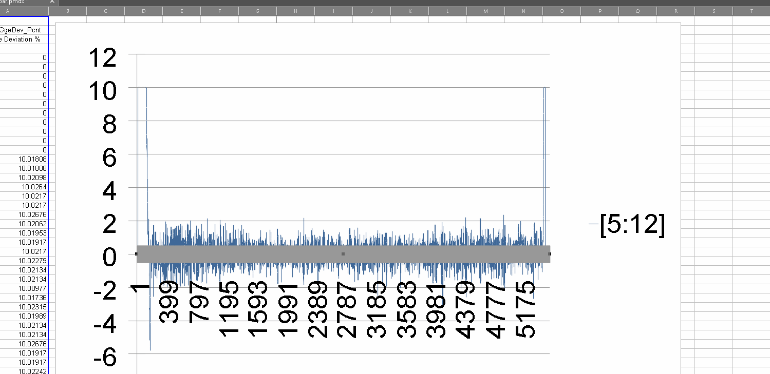 When I open a CSV file, and select a single column of data then plot that as a line graph I get a grey bar along the X axis. Photo enclosed.
